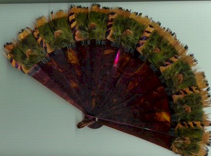 Fan imitating tortoise-shell. At the top of each stick, brown and green