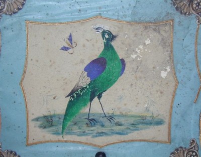 fixed on blue-stained paper; glued-on golden borders; stained; turned,