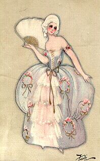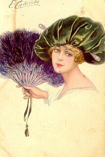 on Postcards The multiple use of the fan is undisputed: you can whisk away flies, calm summer's heat, fan the fire, beautify the female appearance or communicate love messages. The 19th century, full of romanticism, was of particular importance for women who slowly started to fight for their freedom and their rights. It was difficult for them to display openly their feelings. Men who wanted to court them, needed to use a symbolic language, to avoid any ambiguities that might ruin the reputation of the beloved one. Towards the end of the 19th century, and the beginning of the 20th, some novelties entered the daily life. Communication methods were modernised, foreign innovations were taken up enthusiastically. Graphical design progressed and enabled access for many to what was shortly before only accessible by the privileged. In these days, written contacts were of major importance. Lacking other technologies that we enjoy nowadays, letters were the only possible communication means between people. It is true that many of these letter were written "by proxy" but the content correponded faithfully to the intention of the person who dictated it. The necessity to