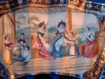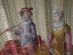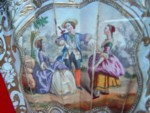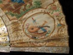 Music instruments in the side medallions of the fan "Amor's lesson",